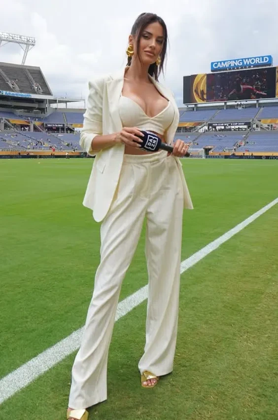 에서 볼 수 있듯이, 그녀는 밝은 색상의 맞춤형 수트를 입고 있으며, 크롭탑과 함께 스타일리시한 모습을 보여주고 있습니다. 그러나 이러한 의상이 과연 스포츠 중계에 적합한 것인지에 대한 논란이 일고 있습니다.