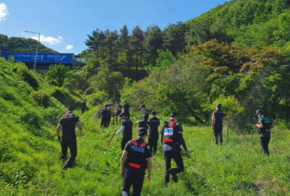 수색 작업에 참여하는 경찰관들입니다.