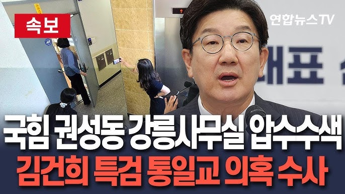 [4] YouTube · KBS News - [지금뉴스] 김건희 특검, 권성동 의원실 등 압수수색 진행중 ... (https://www.youtube.com/watch?v=8y-WPJlHWds)