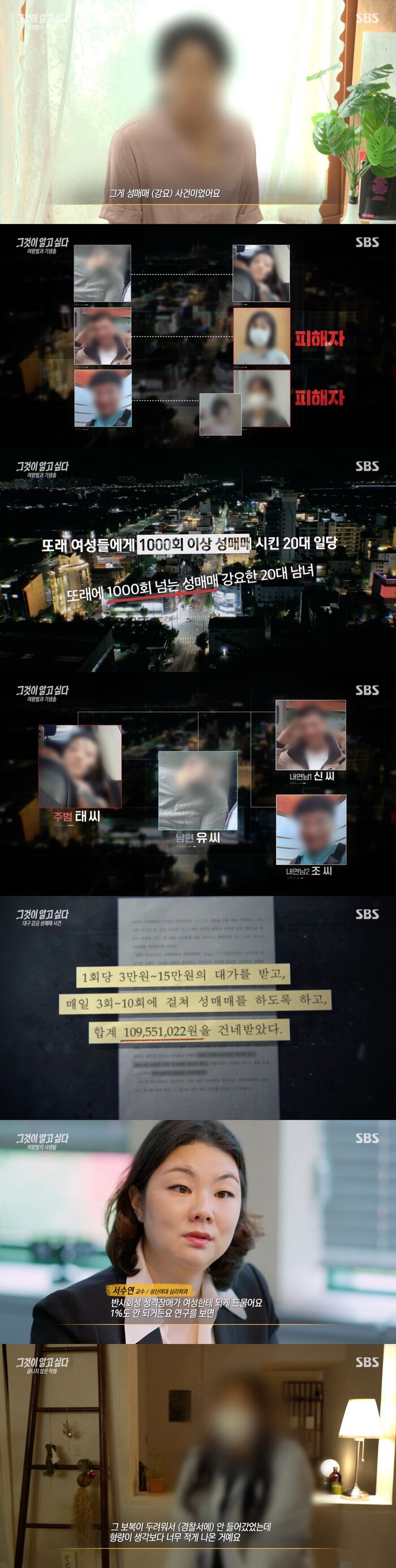 이 사건은 대구에서 발생한 성매매 사건으로, 피해자들은 감금된 상태에서 성매매를 강요당했습니다. 사건의 중심에는 '여왕벌'이라는 별명을 가진 여성과 그녀의 내연남들이 있습니다. 이들은 피해자들을 감금하고, 성매매를 통해 이익을 챙겼습니다. 사건의 전말은 SBS의 프로그램 '그것이 알고 싶다'에서 자세히 다루어졌습니다.