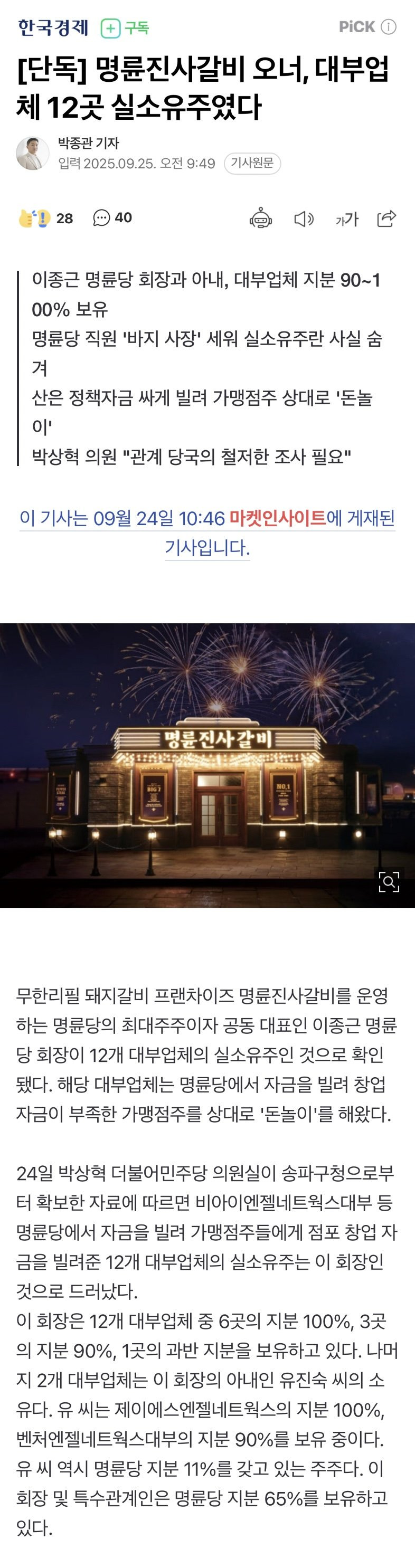 [1] 네이트 - [단독] 명륜진사갈비 오너, 대부업체 12곳 실소유주였다 (https://news.nate.com/view/20250924n41736)