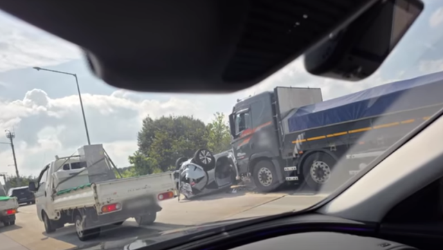 사고의 원인은 아직 정확히 밝혀지지 않았지만, 초기 보도에 따르면 화물차가 속도를 줄이지 않고 승용차를 들이받은 것으로 보입니다. 사고 당시의 영상에서는 피해 차량이 뒤집힌 상태로 수십 미터를 대형 화물차에 밀려간 모습이 포착되었습니다.
