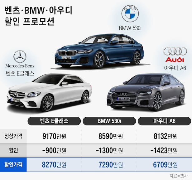또한, 벤츠 E-Class와 BMW 530i 모델도 할인 혜택을 제공하고 있으며, 이들 모델은 각각 900,000원과 1,300,000원의 할인 혜택을 받을 수 있습니다.