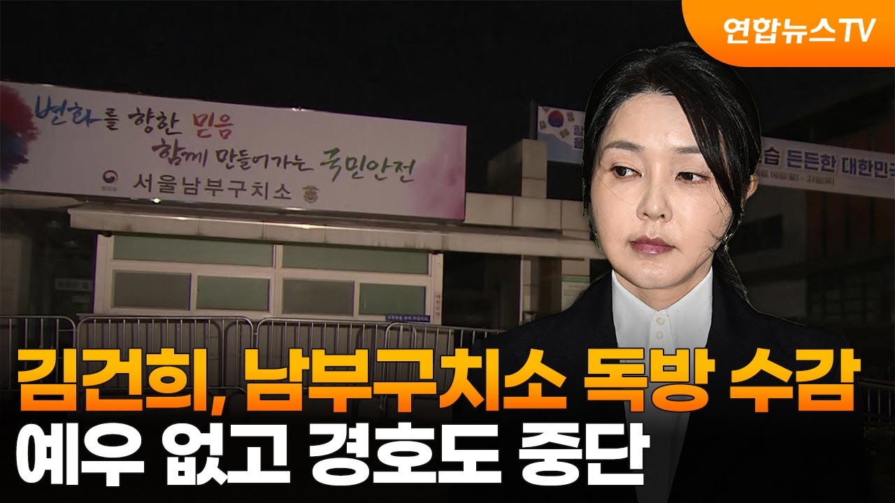 [1] YouTube · 연합뉴스TV - 김건희, 남부구치소 독방 수감…예우 없고 경호도 중단 / 연합 ... (https://www.youtube.com/watch?v=4LixIPI1Idw)