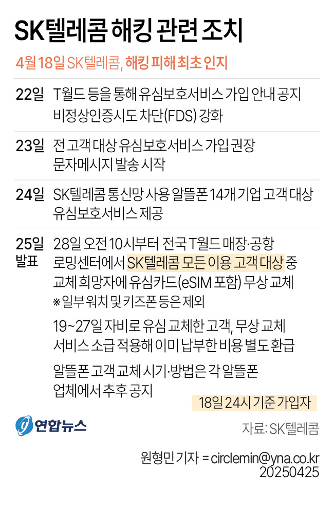 - 4월 22일 : 고객 유심 정보 유출 확인