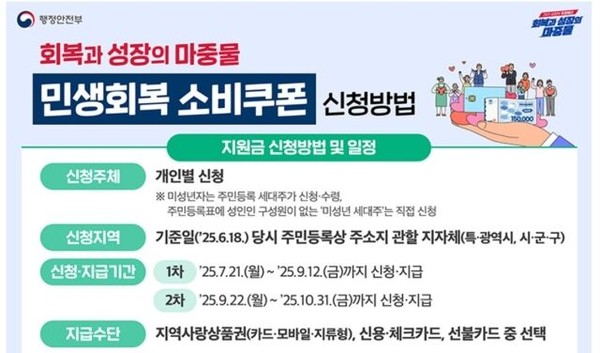 [1] 행정안전부 - 행정안전부> 업무안내> 지방재정경제실> 민생회복 소비쿠폰 ... (https://www.mois.go.kr/frt/sub/a06/b07/livelihoodCoupon/screen.do)